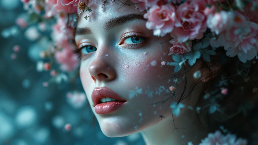This commitment to amplification emerges most strikingly in their portrayal of cultural figures and celebrities. Brad Pitt emerges delicate and exposed; Bill Murray appears contemplative with botanical elements adorning his features; Drew Barrymore is presented with an intensity that surpasses traditional portrait work. These images refuse easy categorisation, existing instead in a undefined realm between personal identity and constructed image. The figures remain recognisable yet substantially transformed, reimagined through Inez and Vinoodh’s joint creative approach into something far more intricate and visually compelling than conventional celebrity portraiture typically achieves.